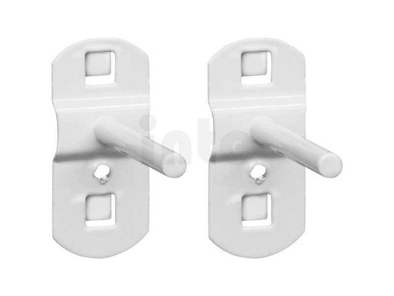Háky s rovným zakončením, kompatibilní s dílenskými závěsnými systémy, které využívají čtvercové děrování 10 mm2 při vertikální/horizontální vzdálenosti středů otvorů 38 mm. Délka závěsné plochy: 50 mm. Typ balení: SB (závěsné), 2 kusy.