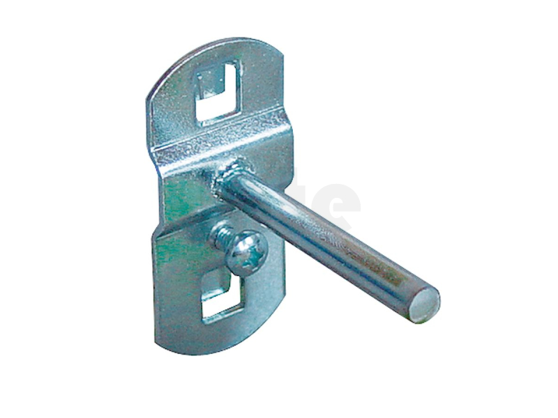 Hák s rovným zakončením, kompatibilní s dílenskými závěsnými systémy, které využívají čtvercové děrování 10 mm2 při vertikální/horizontální vzdálenosti středů otvorů 38 mm. Délka závěsné plochy: 50 mm. Typ balení: volné (kusové).