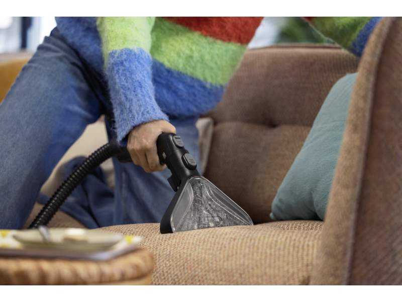 Při použití přímo na rukojeti je exktrakční hubice Kärcher ideální pro čištění sedaček, křesel, židlí i dalších čalouněných ploch. Průhledný kryt umožňuje kontrolu procesu čištění v reálném čase, takže vždy vidíte účinnost odsávání a množství odstraněných nečistot.