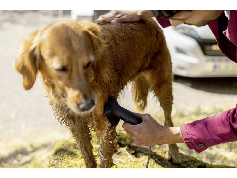 Kartáč je ideální pro rychlé opláchnutí tlapek po procházce, ale stejně dobře poslouží i při čištění celé srsti. Voda je dávkována pouze při stisku spouště, což znamená úspornou spotřebu vody, delší výdrž baterie a možnost použití i mimo domov – například před nasednutím do auta nebo po návratu z výletu.
