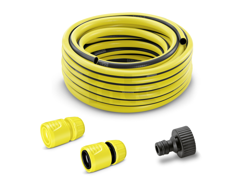 Kärcher sada hadic pro vysokotlaké čističe představuje kompletní řešení pro přívod vody k tlakové myčce i běžné zahradní zavlažování. Součástí balení je 10metrová hadice PrimoFlex® (1/2"), přípojka na kohoutek G3/4, hadicová spojka a hadicová spojka s Aqua Stop pro bezpečné a pohodlné používání.