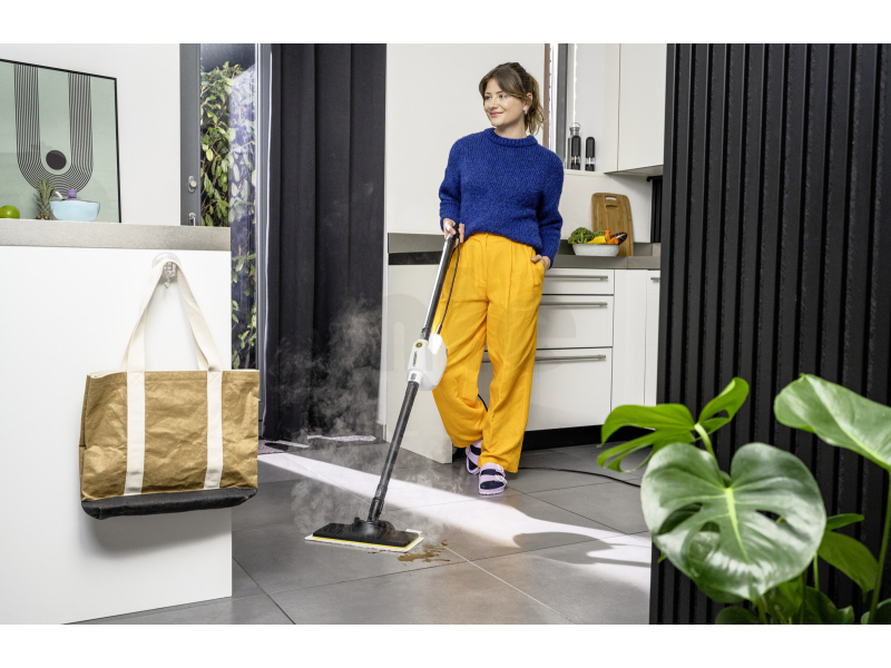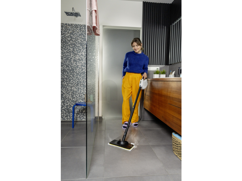 Sada na čištění podlah KÄRCHER EasyFix pro SC1 umožňuje během několika sekund proměnit ruční parní čistič SC 1 Multi v efektivní parní mop pro důkladné a hygienické čištění tvrdých podlah. Stačí připojit podlahovou hubici EasyFix Large s prodlužovacími trubkami a můžete okamžitě začít s úklidem celé domácnosti.