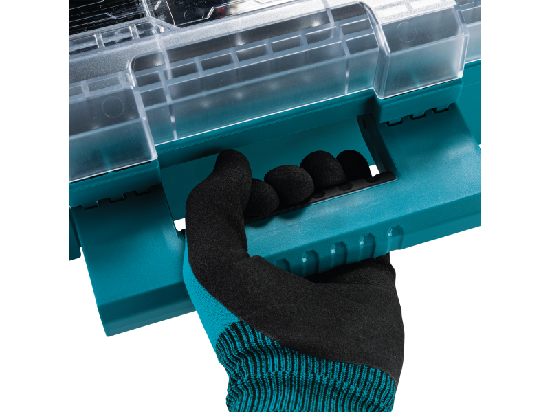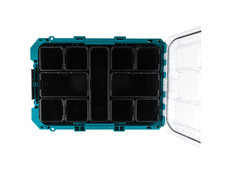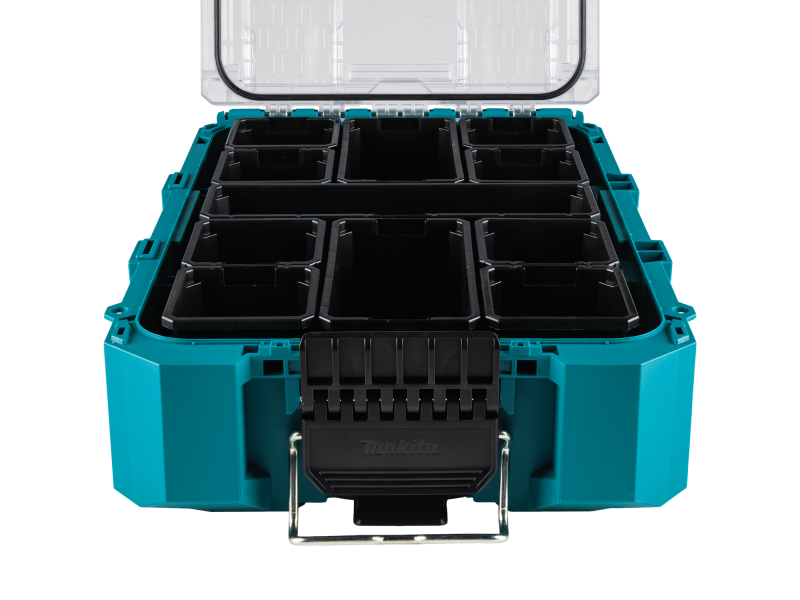 Organizér je vyroben z kopolymeru odolného proti nárazu, aby odolal nejnáročnějším podmínkám na pracovišti. Hluboké přihrádky s oddělovacími štěrbinami mají různé délky a přihrádky se do sebe zasunují pro větší optimalizaci prostoru. Nosnost 23 kg, objem 18.4 l Až o 40 % větší kapacita ve srovnání s předními konkurenty Průhledné víko pro snadný pohled dovnitř a žebrovaný design zajišťuje přihrádky proti pohybu 11 vyjímatelných přihrádek organizéru pro všestranné skladování Hluboké přihrádky s dělicími otvory pojmou různé délky Příslušenství pro rozdělovač a horní zásobník pro více prostoru [prodává se samostatně] Koše se skládají dohromady pro větší optimalizaci prostoru Velké západky vhodné pro práci v rukavicích Robustní pohodlná rukojeť pro přenášení Kovové zesílené uzamykací body a skrytý slot Security Tracker