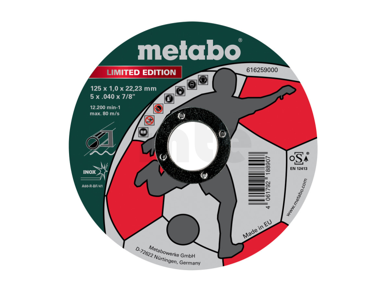 - Limitovaná edice Soccer 125 x 1,0 x 22,23 mm, Inox, řezný kotouč, přímé provedení