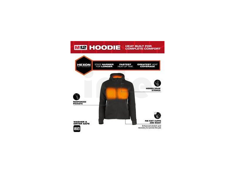 Zažijte výjimečný tepelný komfort s dámskou vyhřívanou mikinou s kapucí MILWAUKEE M12 HHLBL5-0 (S) v černé barvě. Tato mikina je vybavena pokročilou technologií HEXON HEAT TECHNOLOGY™, která zajišťuje rychlý ohřev a rovnoměrné rozložení tepla. S baterií M12™ REDLITHIUM™ 3,0 Ah si můžete užít až 11 hodin příjemného tepla na jedno nabití.