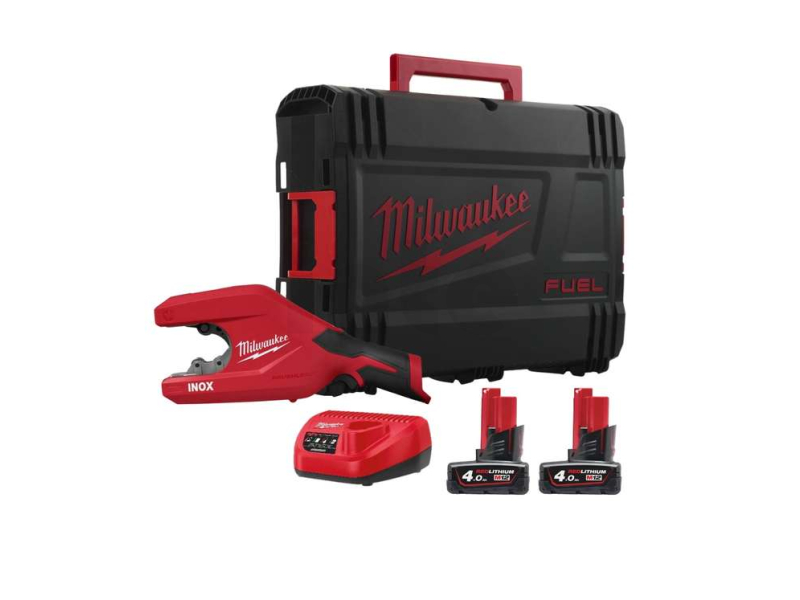 MILWAUKEE M12 PCSS54-402C Aku řezačka potrubí (54 mm) – Výkonný nástroj RAPTORXL™ s bezuhlíkovým motorem, který zvládne řezat potrubí z nerezové oceli, uhlíkové oceli a mědi o průměru až 54 mm.…