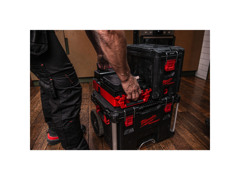 - Kompatibilita se systémem PACKOUT™ umožňuje stohování nebo upevnění na montážní desku PACKOUT™ ve vozidle