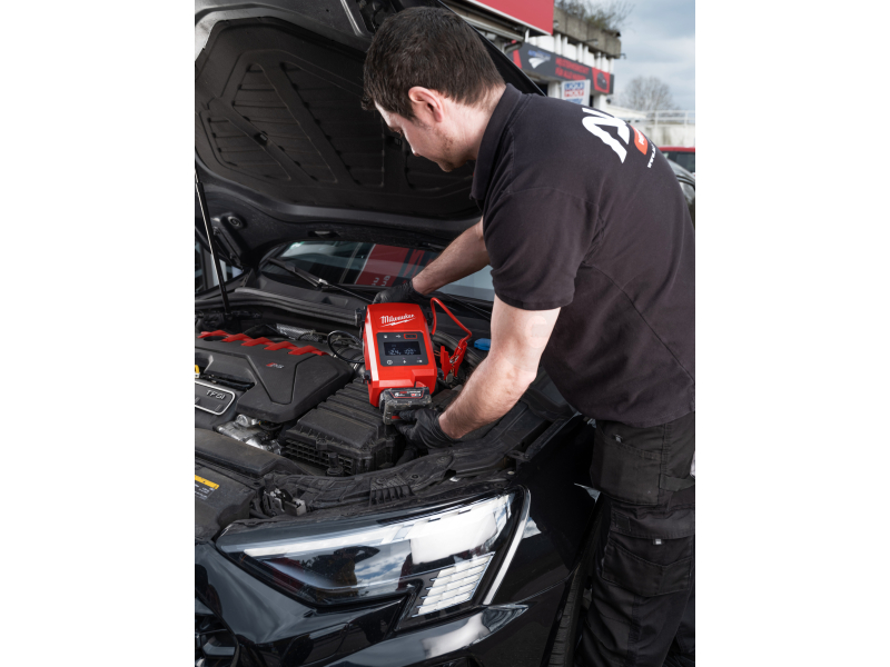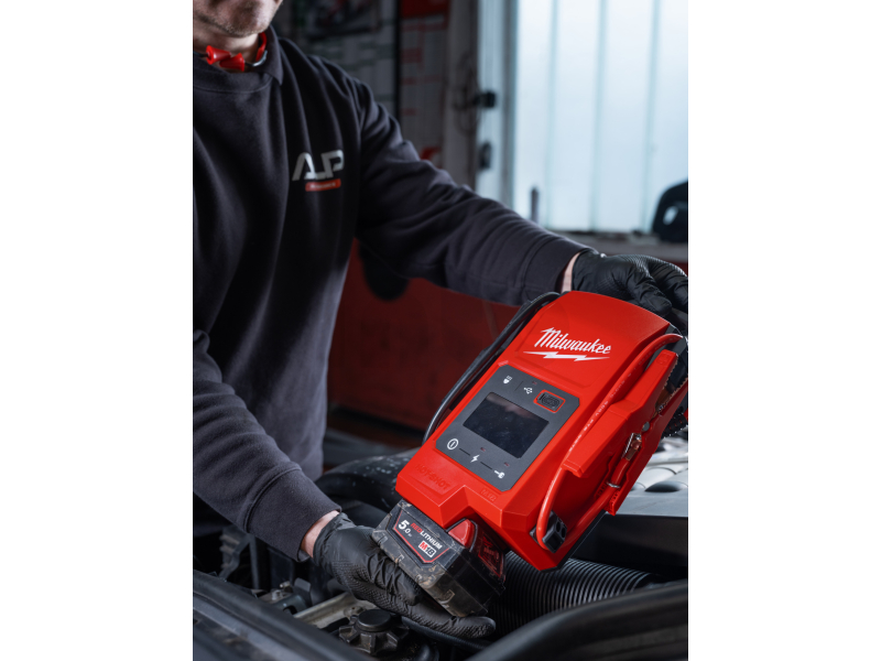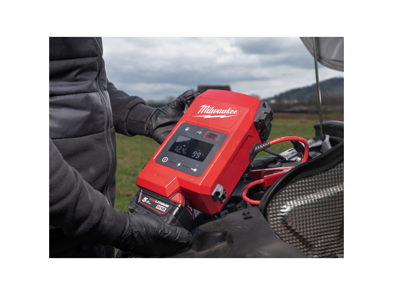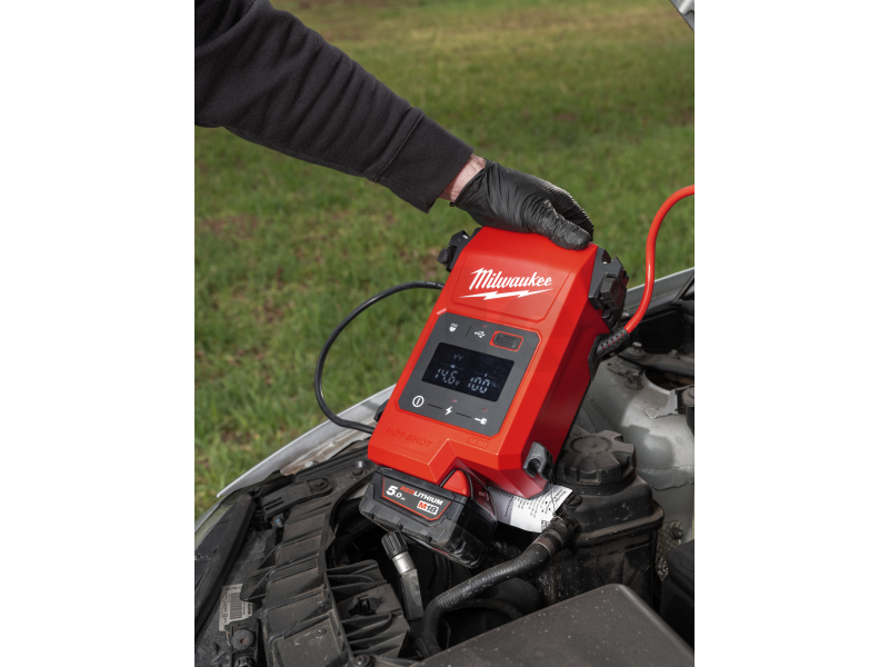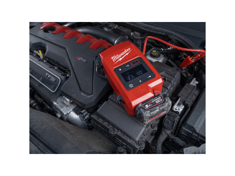 - M18™ startovací zdroj dodává až 2000 A špičkového proudu a zvládne nastartovat benzinové motory do 8,1 l a dieselové do 3,0 l