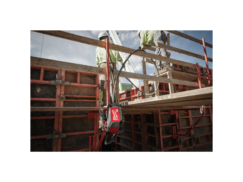 - Má dostatečný výkon pro zatlačení hlavice až do ⌀63 mm s vibracemi nad 11 200 v/m pro optimální zhutnění i toho nejtužšího betonu
