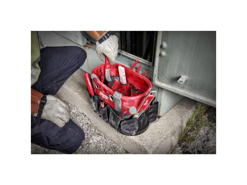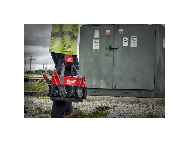 MILWAUKEE Oválná brašna na nářadí je navržena pro profesionály, kteří potřebují spolehlivé a odolné řešení pro organizaci a přenášení nářadí. Vyrobena z vysoce odolného balistického materiálu 1680D, který zajišťuje dlouhou životnost a ochranu obsahu. Brašna obsahuje 12 kapes, díky nimž nabízí dostatek prostoru pro efektivní organizaci elektrického nářadí, příslušenství a ručního nářadí.