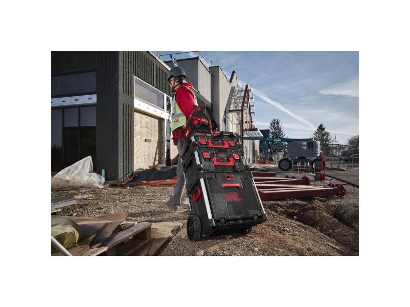 MILWAUKEE PACKOUT Kufr Rolling Drawer XXX trolley box je nezbytným pomocníkem pro profesionály, kteří vyžadují spolehlivé a odolné řešení pro skladování a přepravu nářadí. Díky nárazuvzdorné konstrukci z polymerů a kovem vyztuženým rohům je kufr navržen tak, aby odolal náročným podmínkám na staveništi.