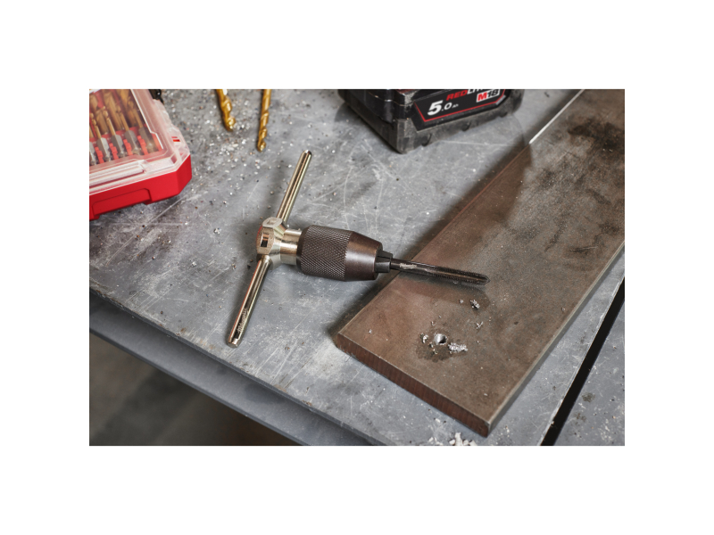 - Obsahuje precizně opracované závitovací příslušenství a rukojeti pro nejběžnější použití.