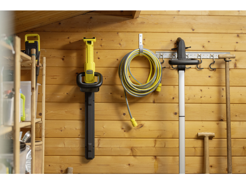 • Jednoduché upevnění pro bezpečné přenášení nůžek na živý plot kamkoli je zapotřebí a pro jejich bezpečné uskladnění po použití.