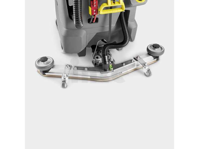 Odolná konstrukce zahrnuje hliníkovou kartáčovou hlavu i sací lištu s dlouhou životností, robustní podvozek a unikátní sací systém, který zajišťuje spolehlivé odsávání vody a bezpečně suchou podlahu bez zbytkové vlhkosti. Oddělený systém nádrže na špinavou vodu, integrované dávkování čisticího prostředku a praktické držáky Home Base pro příslušenství přispívají k rychlé, hygienické a ergonomické práci obsluhy.
