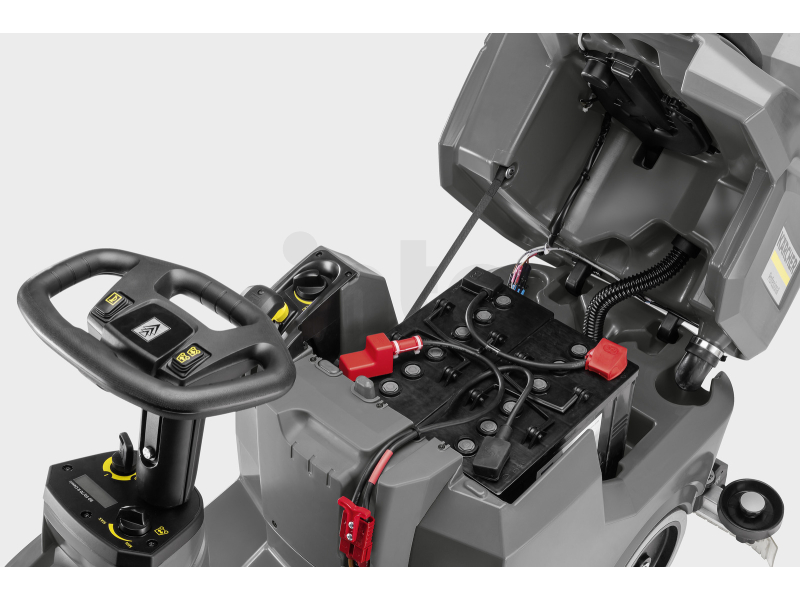 Klíčovou výhodou je moderní lithium-iontová baterie 80 Ah, která poskytuje dlouhou výdrž, možnost rychlého i průběžného nabíjení a maximální dostupnost stroje během pracovního dne. Nízká hlučnost pouhých 67 dB(A) umožňuje použití i v hlukově citlivých provozech, jako jsou nemocnice, hotely nebo administrativní budovy.