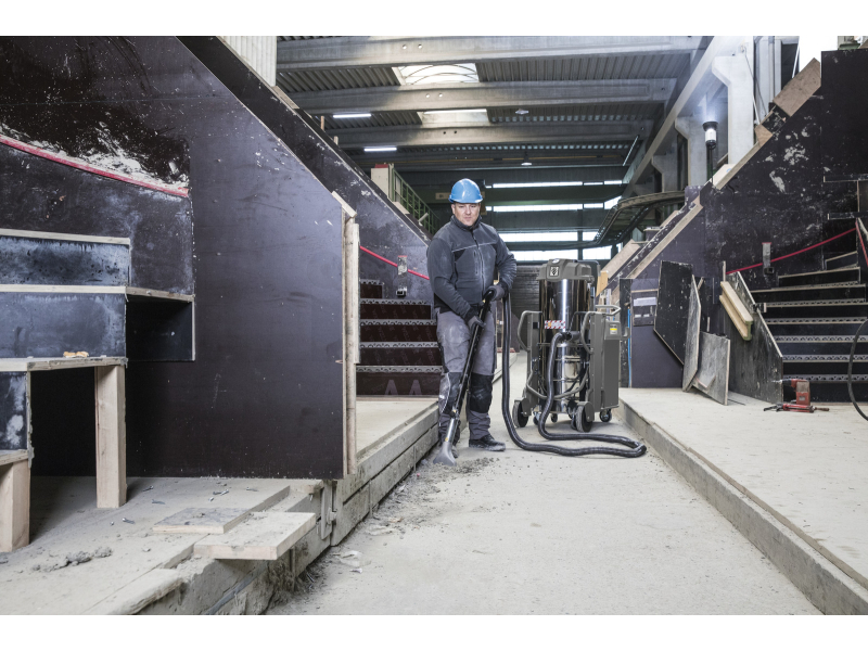 Robustní konstrukce zahrnuje nerezovou nádrž o objemu 100 l, praktické uložení příslušenství přímo na stroji a možnost volitelného dálkového ovládání pro pohodlné zapínání a vypínání. Díky těmto vlastnostem je vysavač ideální pro strojírenství, stavebnictví, zpracování materiálů, výrobu i další náročné průmyslové provozy.