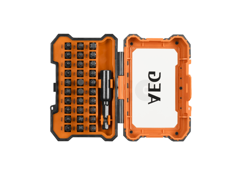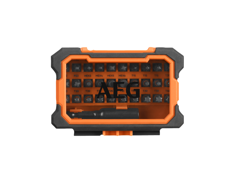 • 30x 50mm šroubovací bit - 6x Philips (1xPH1, 3xPH2, 2xPH3), 6x Pozidrive (1xPZ1, 3xPZ2, 2xPZ3), 4x šestihran (3mm, 4mm, 5mm, 6mm), 14x Torx® (3xT15, 4xT20, 4xT25, 2xTX30, 1x TX40), 1x magnetický 60mm držák bitů