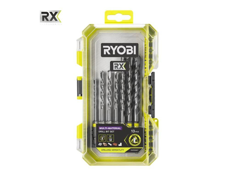 Sada je součástí profesionální řady RYOBI RX, která kombinuje vysoký výkon, odolnost a ekologické zpracování. Ideální pro všechny, kdo chtějí univerzální řešení bez nutnosti měnit vrtáky při práci s různými materiály.