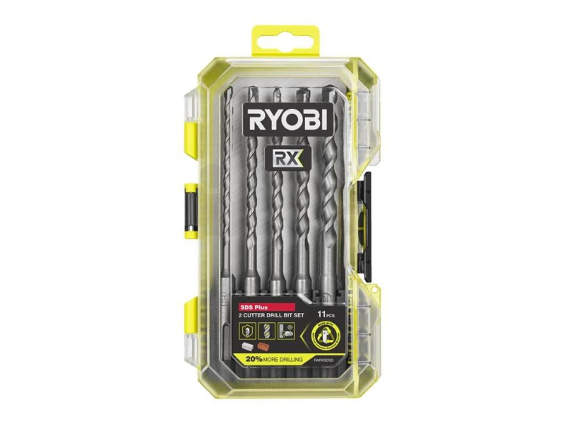Sada RYOBI RARXSDS5 RX SDS Plus nabízí špičkový výkon, odolnost a přesnost při vrtání do tvrdých materiálů, jako je beton, cihla a kámen. V porovnání se základní řadou RYOBI® SDS poskytuje až o 20 % vyšší rychlost vrtání díky optimalizovanému designu a špičkové konstrukci z karbidu wolframu.