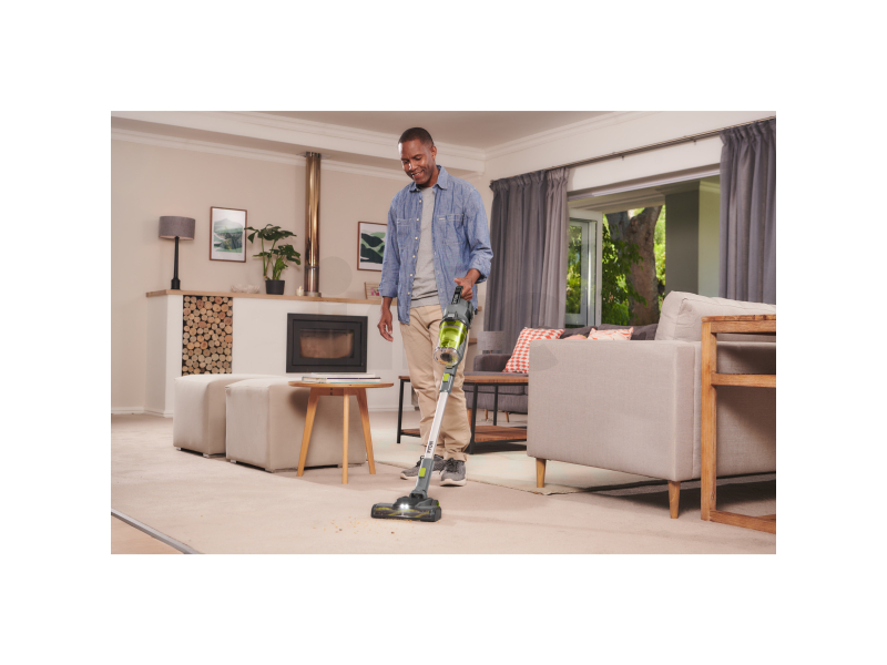 - Hlavice se snadno připevní a odejme, což umožňuje všestranné použití vysavače: pro tradiční úklid, čištění čalounění, úkoly s delším dosahem jako je čištění žaluzií, a zajištění kompletního úklidu od podlahy až po strop.