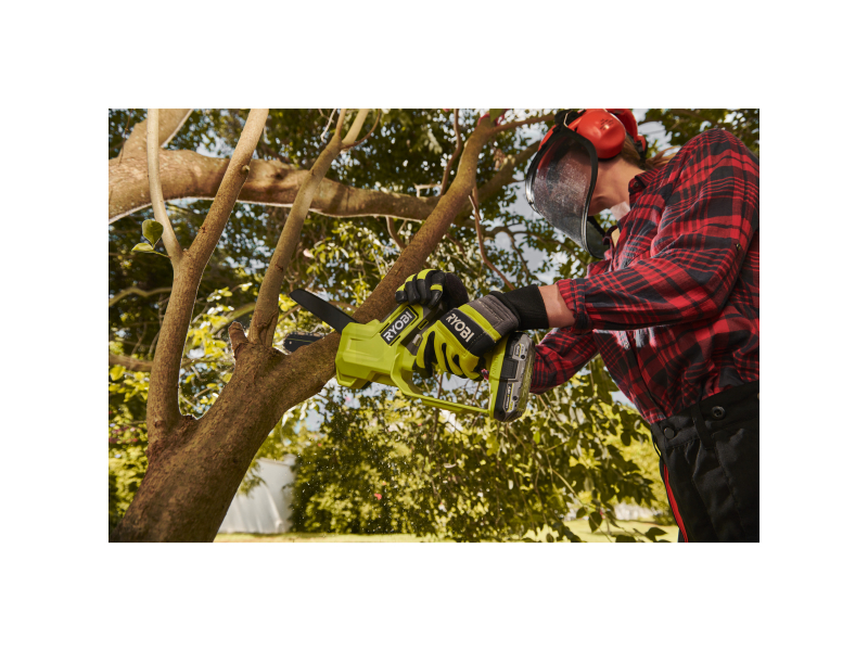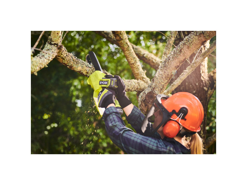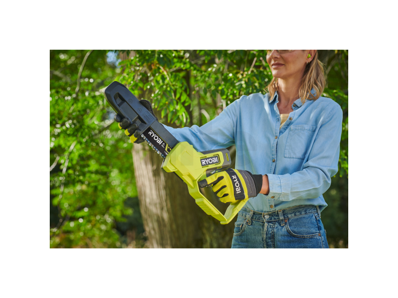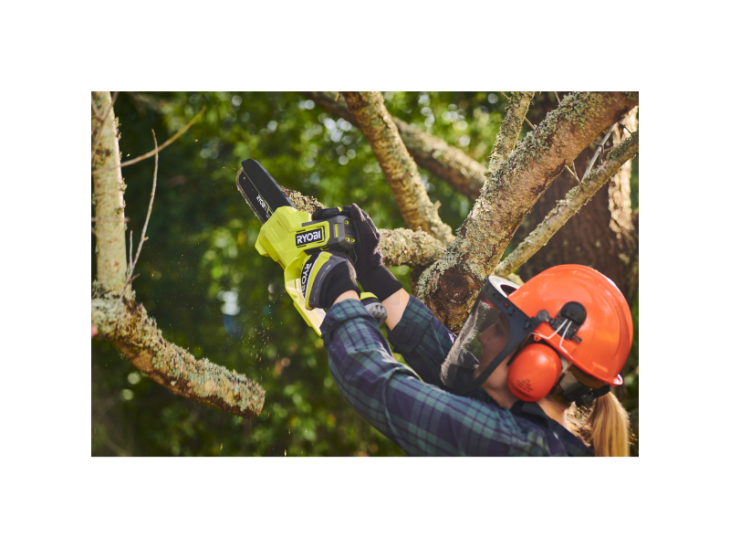 - Díky motoru 18V a rychlosti řetězu 4,4 m/s tato pila snadno prořízne větve o tloušťce až 13 cm.
