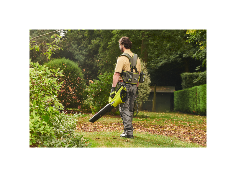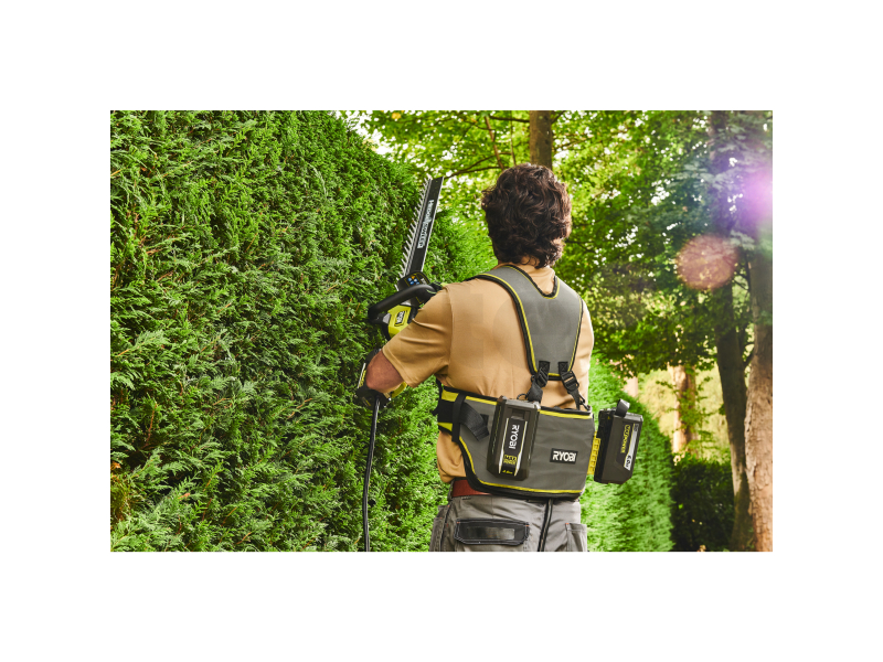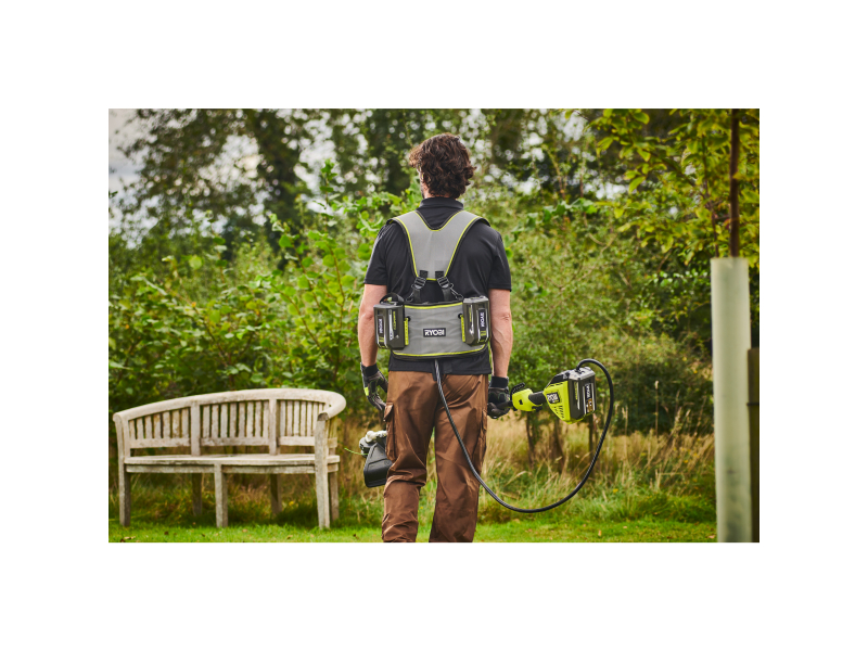 • Plně nastavitelný a pohodlný ramenní popruh rovnoměrně rozkládá váhu akumulátorů po celém těle.
