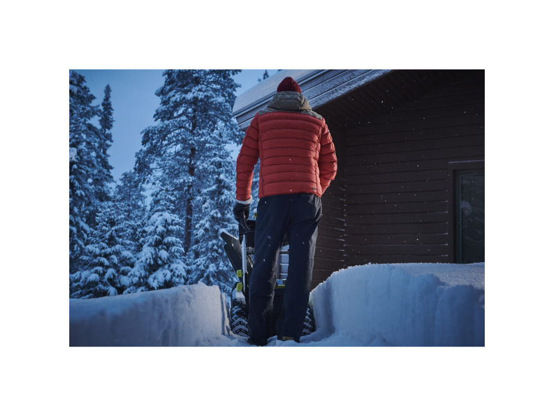 - Dva bezuhlíkové motory nabízejí výkon a efektivitu srovnatelnou se sněhovou frézou o objemu 243 cm³.