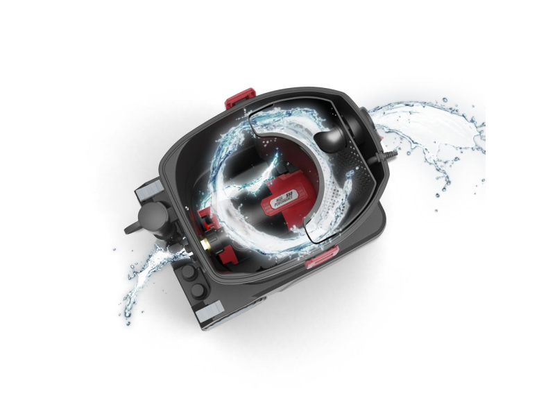 Systém kombinuje vysavač o výkonu 1200 W a čerpadlo o výkonu 550 W, což umožňuje současné vysávání a odčerpávání vody. Díky tomu lze pracovat bez nutnosti častého vyprazdňování nádoby. Maximální podtlak 230 mbar a průtok 74 l/s zajišťují rychlé a efektivní vysávání vody i nečistot.