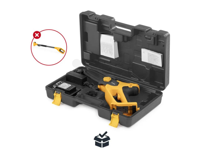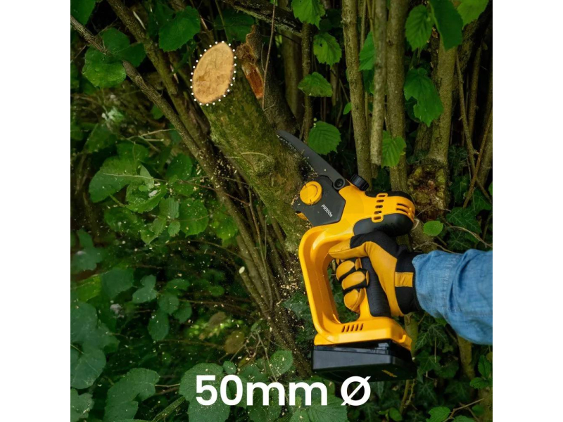 Pila je poháněna 20V 2Ah akumulátorem ePower, který zvládne až 120 řezů větví o průměru do 50 mm na jedno nabití. Díky tomu je ideální pro běžné zahradní práce i lehké kutilské využití.