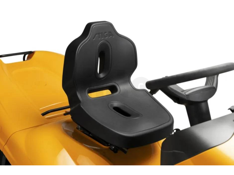 Pro maximální komfort při práci je model vybaven ergonomickým sedadlem Comfort s loketními opěrkami, měkkým volantem a přehlednou palubní deskou se 6 LED indikátory, která poskytuje důležité informace o stavu stroje (např. parkovací brzda, zapnutí žacího ústrojí nebo stav paliva).