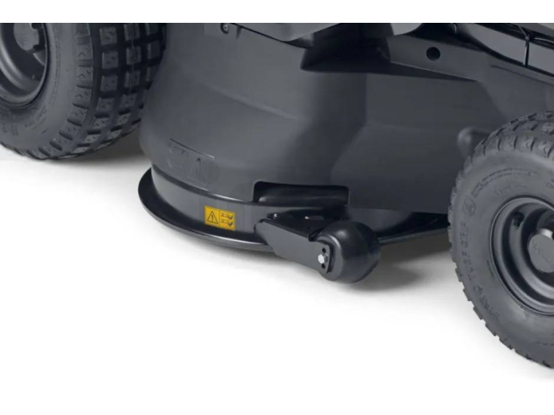 Traktor je vybaven žacím ústrojím o šířce 98 cm se dvěma rotačními noži, které zajišťují rychlé a rovnoměrné sekání velkých ploch. Posekaná tráva je shromažďována do velkého sběrného koše o objemu 300 litrů, což umožňuje dlouhé pracovní intervaly bez nutnosti častého vysypávání.