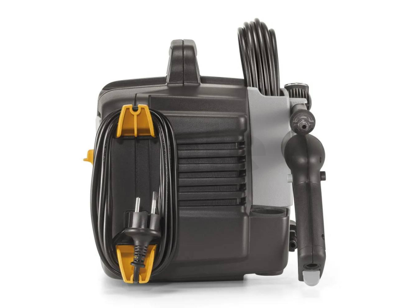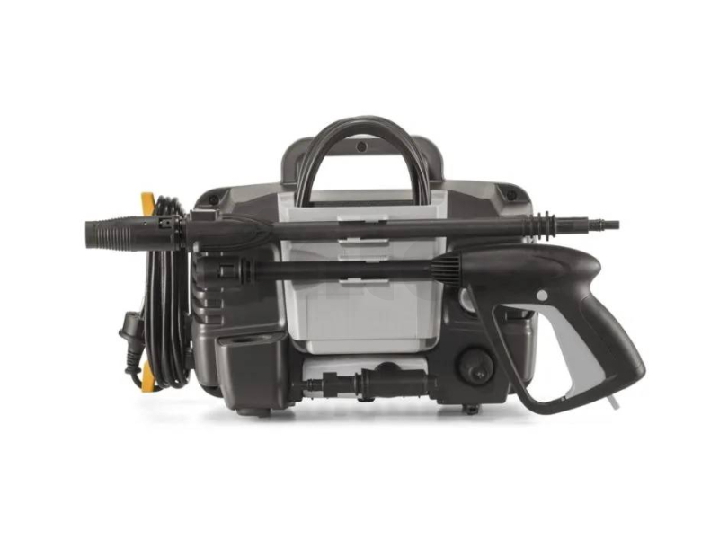 Kompaktní konstrukce a nízká hmotnost zajišťují snadnou manipulaci a přenášení, zatímco praktické horní madlo umožňuje pohodlné přemístění kamkoliv potřebujete. Součástí je také 5metrová vysokotlaká hadice, která vám poskytne dostatečný dosah při práci.
