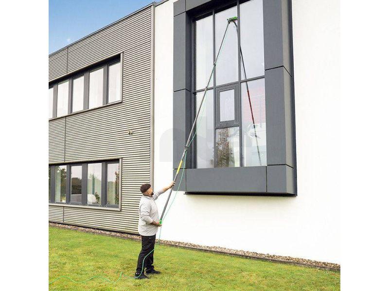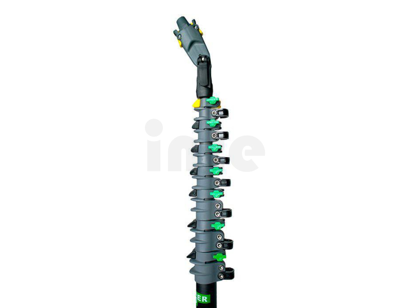 Tyč má 7 dílů a celkový dosah 10 m, přičemž ve složeném stavu měří pouze 1,74 m. To zajišťuje snadnou manipulaci, přepravu i skladování bez kompromisů ve výkonu.