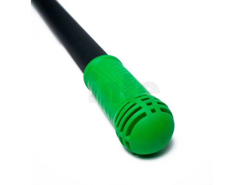 Integrovaná gumová rukojeť s texturovaným povrchem zajišťuje pevný a jistý úchop, chrání tyč při postavení na zem a umožňuje vývod hadice, pokud je vedena vnitřkem tyče.