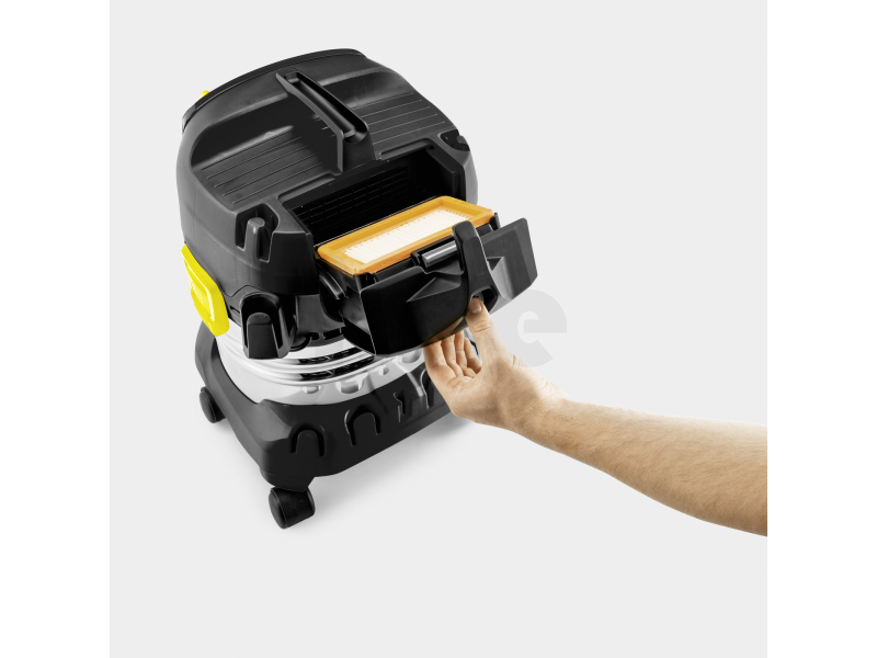 • Jednuduché a bleskové vyjmutí filtru vyklopením filtrační kazety - zcela bez kontaktu s nečistotami. Pro mokré a suché vysávání bez potřeby výměny filtru.