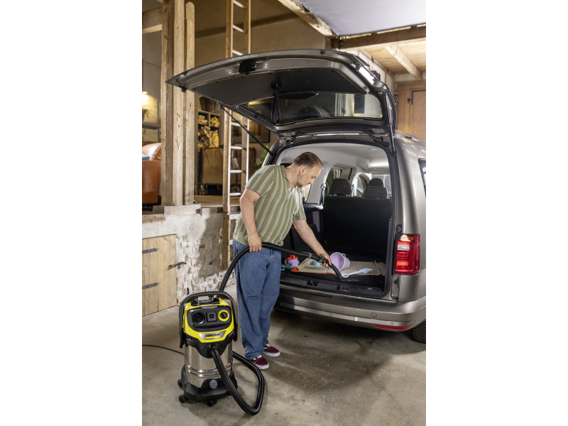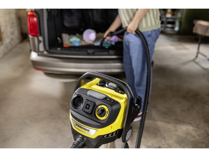 WD 7 Control P S nabízí také funkci fukaru, vypouštěcí šroub pro snadné vypuštění vody, stabilní parkovací brzdu a ekologický design s využitím recyklovaných materiálů. Ideální volba pro dílnu, garáž, rekonstrukce i náročný úklid domácnosti.
