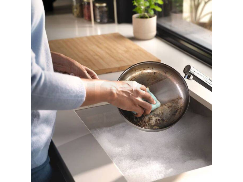 Abrazivní čisticí vrstva si poradí i s odolnými skvrnami a připečenou špínou, zatímco měkká strana z hydrofilní pěny nabízí až pětinásobnou absorpci ve srovnání s tradičními syntetickými houbičkami. Kombinace vysoké účinnosti, savosti a dlouhé životnosti dělá z Vileda Pro Clean ideálního pomocníka pro mytí nádobí, dřezu, varné desky i kuchyňských ploch.