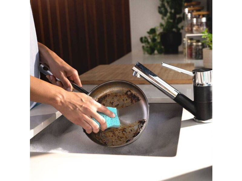 Abrazivní vrstva si poradí s odolnými nečistotami a připáleninami, přitom je dostatečně šetrná k většině povrchů. Inovativní enzymatická technologie s aktivními enzymy pomáhá rozkládat zbytky jídla a tuků, čímž zajišťuje, že houbička zůstává hygienická a svěží až po dobu dvou měsíců, i při častém používání.