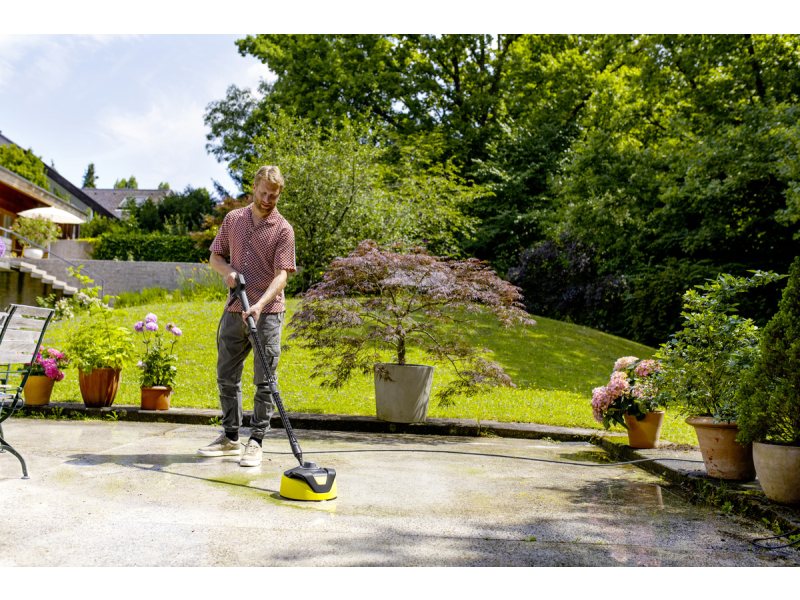 S maximálním tlakem 145 bar, průtokem až 500 l/h a plošným výkonem 40 m²/h zvládne efektivně čistit terasy, chodníky, fasády, zahradní nábytek i vozidla. Multifunkční pracovní nástavec 4 v 1 Multi Jet umožňuje jednoduchým otočením přepínat mezi čtyřmi typy proudů bez nutnosti výměny nástavců.
