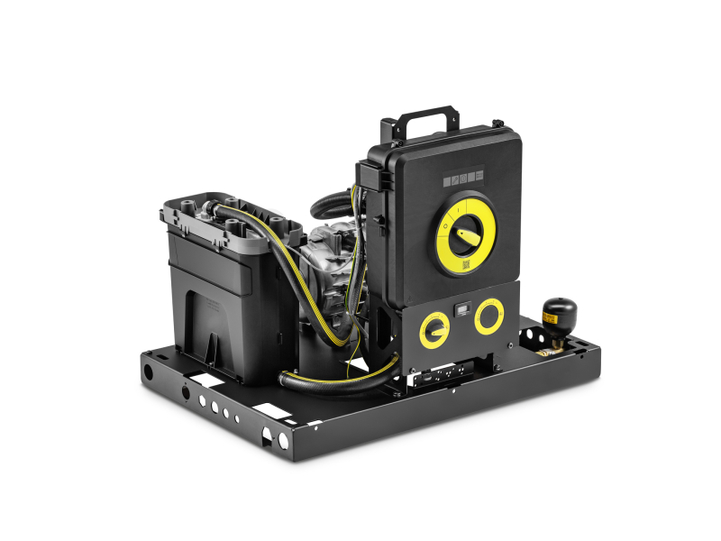 Bezpečný provoz podporuje integrovaná nádrž na vodu s ochranou proti chodu nasucho, elektronické monitorování chyb, provozního stavu a servisních intervalů, velký jemný vodní filtr a systém nasávání čisticího prostředku s dávkovacím ventilem a indikátorem prázdné nádrže. Jednoduché ovládání jedním otočným přepínačem, přehledné indikátory a snadný servisní přístup ke komponentům výrazně zvyšují komfort obsluhy i produktivitu práce.