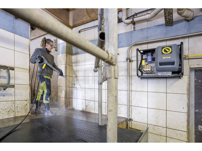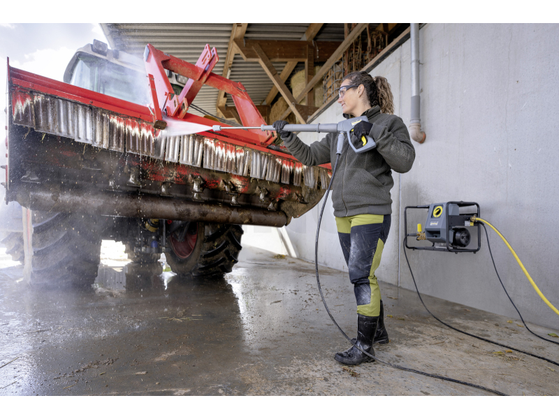 Bezpečný a efektivní provoz podporuje velký integrovaný vodní filtr chránící čerpadlo před nečistotami, snadná servisní dostupnost všech důležitých komponent a rychlospojky EASY!Lock, které umožňují okamžitou výměnu příslušenství bez zbytečných prostojů. Praktická stacionární konstrukce s možností přehledného uložení příslušenství navíc přispívá k ergonomickému a bezpečnému používání.