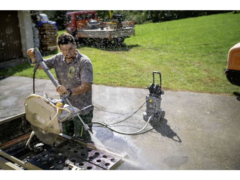 • Profesionální rotační tryska. Robustní gumová hadice s ocelovou výztuhou. Profesionální vysokotlaká pistole s ventilem z nerezové oceli.