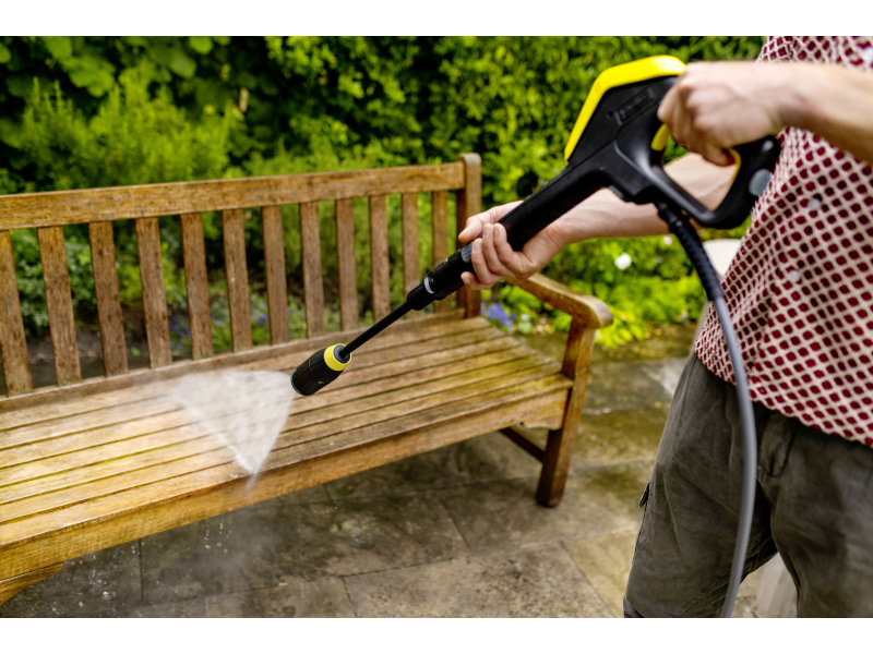 Díky Bluetooth připojení lze tlak a nastavení pohodlně ovládat také přes aplikaci Kärcher Home & Garden, která nabízí integrovaného poradce pro použití, praktické návody a tipy. Multi Jet 4 v 1 tryska umožňuje okamžité přepínání mezi čtyřmi typy proudu pouhým otočením hlavice – bez nutnosti výměny nástavců. Inovativní koncept detergentu 2Way!Wash™ zajišťuje optimální aplikaci čisticího prostředku podle konkrétního použití.