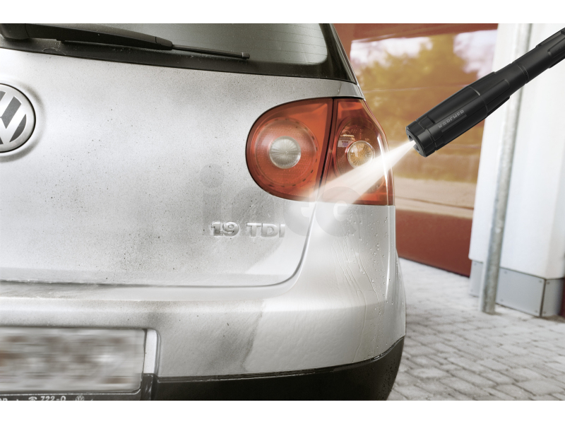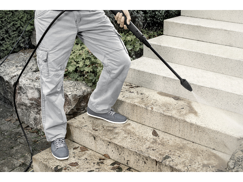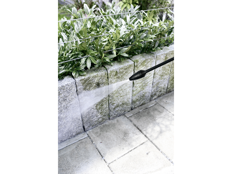 Maximální tlak až 160 barů a průtok vody 600 l/h zaručují rychlé a efektivní čištění rozsáhlých ploch. Tryska Vario Power (VPS) umožňuje plynulé nastavení tlaku jednoduchým otočením, zatímco rotační tryska s bodovým paprskem si poradí i s velmi odolnými nečistotami.