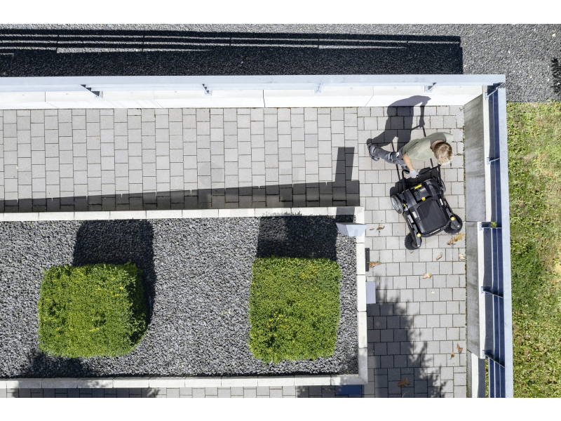 Zametací válec nastavitelný v šesti stupních spolu s plynule nastavitelnými bočními kartáči zajišťuje optimální výsledky na různých typech povrchů a zároveň minimalizuje opotřebení štětin. Integrovaný prachový filtr účinně zachycuje jemné částice a umožňuje zametání téměř bez víření prachu, což je ideální pro vnitřní prostory.