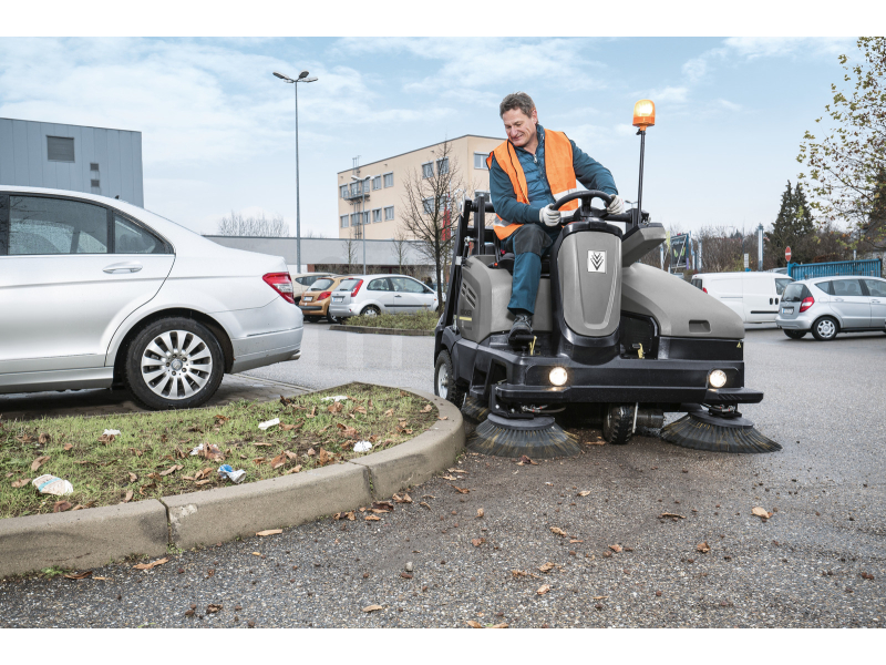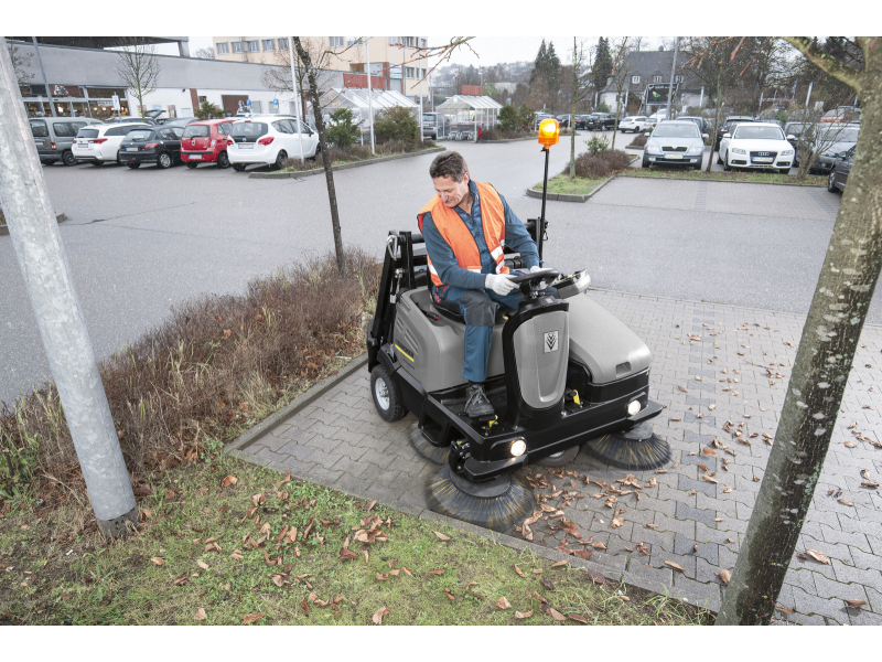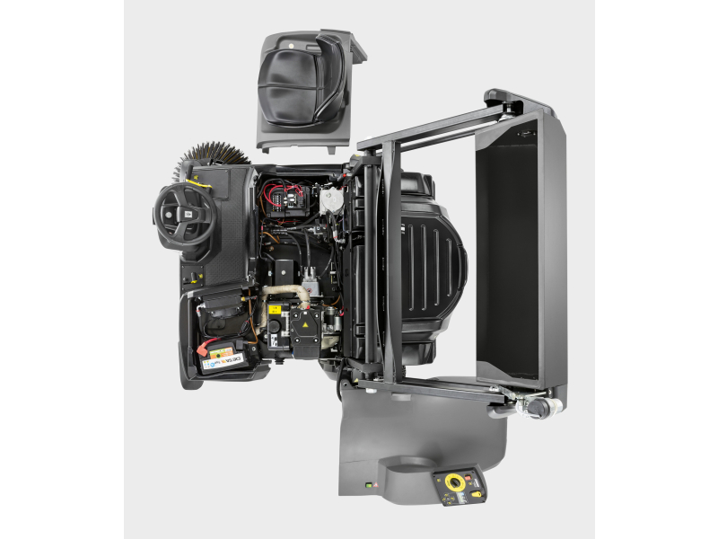 Komfort a bezpečnost obsluhy zvyšuje elektrohydraulické vrchní vyprazdňování, multifunkční displej s přehledem provozních dat, intuitivní ovládací panel Easy Operation a systém Kärcher Intelligent Key, který umožňuje nastavení uživatelských oprávnění a jazyků. Zametací válec umístěný mezi zadní kola zlepšuje překonávání překážek, usnadňuje servisní přístup a umožňuje rychlou výměnu do 5 minut.